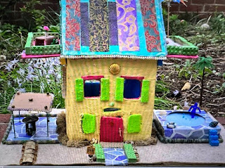 After practicing communications law for many years, she now spends much of her time fashioning miniature houses and dioramas from shoe boxes, milk cartons, papier mache, old costume jewelry and pretty much anything else that strikes her fancy. Ms. Pauker has made more than 40 tiny dwellings over the past several years. She credits her muse and longtime art teacher, Marcie Wolf-Hubbard, with introducing her to this passion and giving her much encouragement along the way.